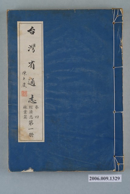 2.1948年6月,臺灣省通志館成立,由林獻堂任館長,主持臺灣省通志纂修事宜。1949年,臺灣省通志館改為臺灣省文獻委員會(簡稱省文獻會);1951年,內政部核備臺灣省通志稿纂修綱目,開始撰稿。先後在1960年完成大部分的篇章(斷限至戰後初期),以及1967年完成增修(斷限至1961年)。由於1960年的原修稿與1967年的增修稿作者眾多,難以連貫,相互牴觸之處不少,以致難以付梓,1966年,省文獻會成立整理小組,展開通志稿整修計畫,調整原志綱目,制定整修辦法,以省文獻會主任委員張炳楠為監修,副主任委員李汝和、林衡道為主修兼總編纂,開始整修計畫。1973年6月,臺灣省通志全書完成出版,不含卷首、卷尾,共10卷、10志、78篇、146冊,總字數約1,877萬字。本物件經濟志林業篇共有2冊,於1970年6月30日出版。