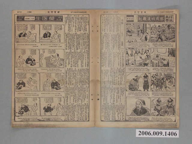 此物件為《中央日報》的姊妹報《圖畫時報》,為1949年底同《中央日報》來臺後一同創辦,由梁又銘所創辦,由於《中央日報》為中國國民黨的黨報,另外梁中銘與梁又銘在中國即是幫國民黨做文宣工作,所以報紙上的漫畫大多為「反共抗俄」的作品,以貶低毛澤東、史達林、中國共產黨的作品為主,另有連載作品如梁又銘的〈土包子下江南〉、牛哥李費蒙的〈牛伯伯打游擊〉、梁中銘的〈黃興傳〉等等。 臺灣漫畫發展主要始於1940年代日治末期,當時臺灣一群對漫畫有著興趣的青年聚集在一起且都參加過日本的漫畫函授學校,這些青年後自稱為「新高漫畫集團」,而其中最重要的成員為葉宏甲,他以「諸葛四郎」的創作者而成名,此為臺灣漫畫之濫觴,後這批「新高漫畫集團」的作者,在戰後於《新新》雜誌上發表漫畫。在二二八事件後《新新》雜誌被迫停刊,此時期的漫畫也由從中國來臺的移民主導,並以「反共抗俄」的政治宣傳漫畫為主,《中央日報》的漫畫專欄即是如此。在1950年代中後期到1960年代初,雖臺灣盜版漫畫極多,但漫畫的創作也是數量可觀,直到1966年正式實施《編印連環圖畫輔導辦法》,使臺灣漫畫受到大量審查,這樣的政策使日本盜版漫畫更加猖獗,並促使臺灣本土漫畫受到嚴重打擊,直到1990年代才逐漸復原。