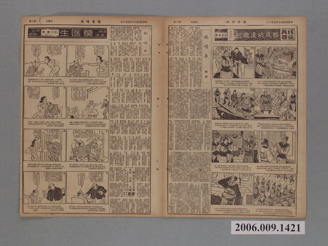 此物件為《中央日報》的姊妹報《圖畫時報》,為1949年底同《中央日報》來臺後一同創辦,由梁又銘所創辦,由於《中央日報》為中國國民黨的黨報,另外梁中銘與梁又銘在中國即是幫國民黨做文宣工作,所以報紙上的漫畫大多為「反共抗俄」的作品,以貶低毛澤東、史達林、中國共產黨的作品為主,另有連載作品如梁又銘的〈土包子下江南〉、牛哥李費蒙的〈牛伯伯打游擊〉、梁中銘的〈黃興傳〉等等。 臺灣漫畫發展主要始於1940年代日治末期,當時臺灣一群對漫畫有著興趣的青年聚集在一起且都參加過日本的漫畫函授學校,這些青年後自稱為「新高漫畫集團」,而其中最重要的成員為葉宏甲,他以「諸葛四郎」的創作者而成名,此為臺灣漫畫之濫觴,後這批「新高漫畫集團」的作者,在戰後於《新新》雜誌上發表漫畫。在二二八事件後《新新》雜誌被迫停刊,此時期的漫畫也由從中國來臺的移民主導,並以「反共抗俄」的政治宣傳漫畫為主,《中央日報》的漫畫專欄即是如此。在1950年代中後期到1960年代初,雖臺灣盜版漫畫極多,但漫畫的創作也是數量可觀,直到1966年正式實施《編印連環圖畫輔導辦法》,使臺灣漫畫受到大量審查,這樣的政策使日本盜版漫畫更加猖獗,並促使臺灣本土漫畫受到嚴重打擊,直到1990年代才逐漸復原。