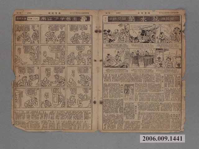 此物件為《中央日報》的姊妹報《圖畫時報》,為1949年底同《中央日報》來臺後一同創辦,由梁又銘所創辦,由於《中央日報》為中國國民黨的黨報,另外梁中銘與梁又銘在中國即是幫國民黨做文宣工作,所以報紙上的漫畫大多為「反共抗俄」的作品,以貶低毛澤東、史達林、中國共產黨的作品為主,另有連載作品如梁又銘的〈土包子下江南〉、牛哥李費蒙的〈牛伯伯打游擊〉、梁中銘的〈黃興傳〉等等。 臺灣漫畫發展主要始於1940年代日治末期,當時臺灣一群對漫畫有著興趣的青年聚集在一起且都參加過日本的漫畫函授學校,這些青年後自稱為「新高漫畫集團」,而其中最重要的成員為葉宏甲,他以「諸葛四郎」的創作者而成名,此為臺灣漫畫之濫觴,後這批「新高漫畫集團」的作者,在戰後於《新新》雜誌上發表漫畫。在二二八事件後《新新》雜誌被迫停刊,此時期的漫畫也由從中國來臺的移民主導,並以「反共抗俄」的政治宣傳漫畫為主,《中央日報》的漫畫專欄即是如此。在1950年代中後期到1960年代初,雖臺灣盜版漫畫極多,但漫畫的創作也是數量可觀,直到1966年正式實施《編印連環圖畫輔導辦法》,使臺灣漫畫受到大量審查,這樣的政策使日本盜版漫畫更加猖獗,並促使臺灣本土漫畫受到嚴重打擊,直到1990年代才逐漸復原。