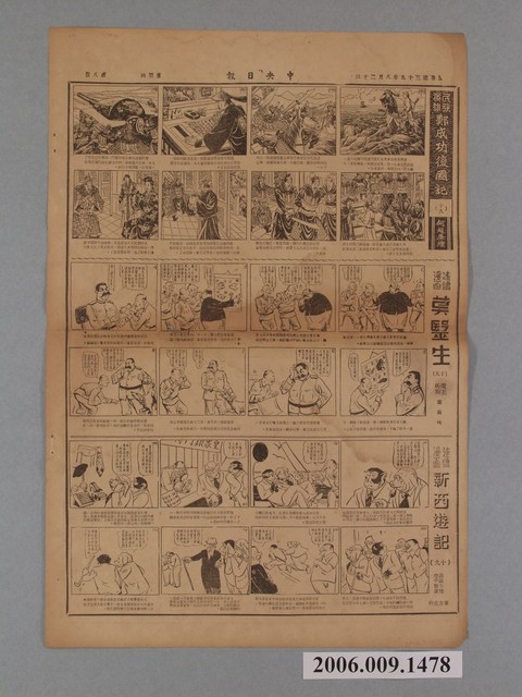 此物件為《中央日報》的專欄之一《漫畫半週刊》,為1950年承繼《中央日報》的姊妹報《漫畫時報》所開設的專欄,由梁又銘、梁中銘主編。由於《中央日報》為中國國民黨的黨報,另外梁中銘與梁又銘在中國即是幫國民黨做文宣工作,所以報紙上的漫畫大多為「反共抗俄」的作品,以貶低毛澤東、史達林、中國共產黨的作品為主,另有連載作品如梁又銘的〈土包子下江南〉、牛哥李費蒙的〈牛伯伯打游擊〉、梁中銘的〈黃興傳〉等等。