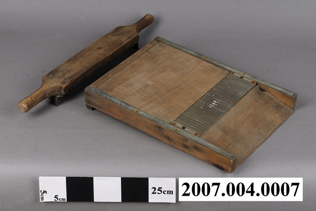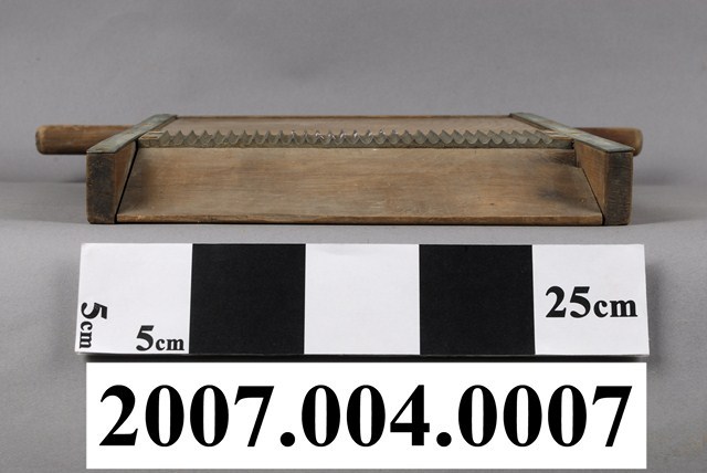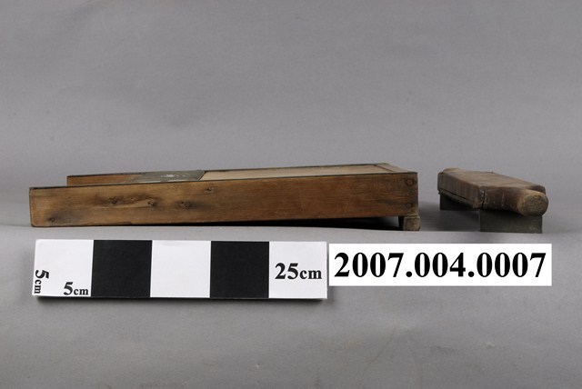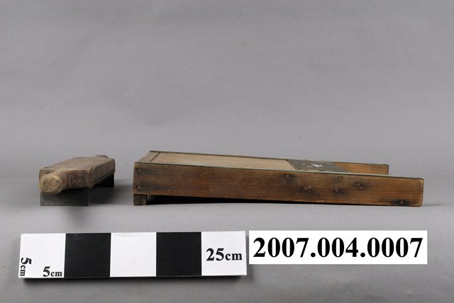 本物件為手工製丸器。共有2個物品,分別為手工製丸器手持處和手工製丸器底座。