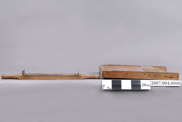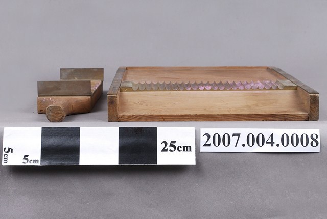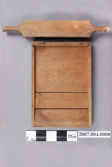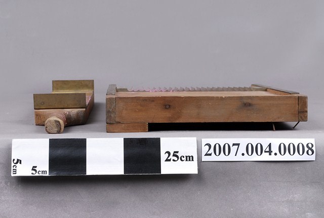 本物件為手工製丸器。共有2個物品,分別為手工製丸器手持處和手工製丸器底座。