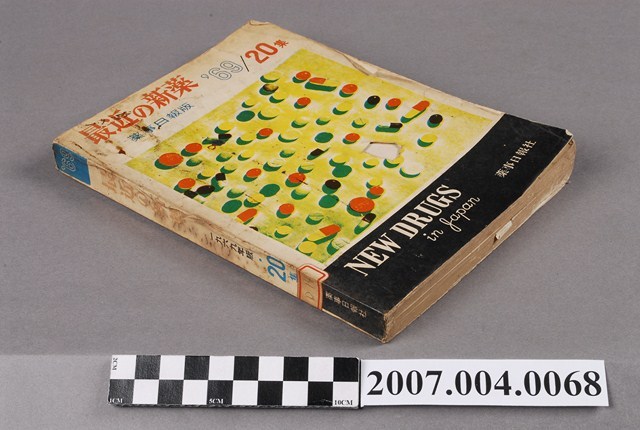 1.本物件為藥事日報社編《最近の新藥》第20集,封面上方左側標題為「最近の新薬」,其下則為「薬事日報版」字樣,右上角為「69」、「20集」字樣,中間圖樣為「各樣式的藥錠」圖示,左下方有「NEW DRUGS in Japan」字樣,右下角有「薬事日報社」字樣。內頁有藥事日報社編寫的前言「まえがき」,後接4頁的目錄。內文報導之前為「昭和43年度における医薬品の承認許可の概観」專文,其下另有「医薬品の製造(輸入)承認に関する資料の取扱い」、「U. S.Adopted Names(1968年度)」二篇專文。內文依序介紹「抗腫瘍剤」、「抗生物質」、「サルファ剤」等內容。本書於昭和44年4月5日由位於東京的藥事日報社發行。