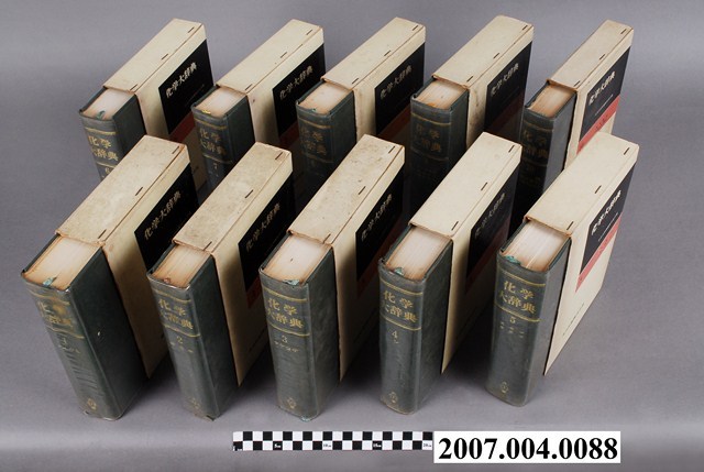 本物件為化學大辭典編輯委員會編《化學大辭典》,共分為10卷,為共立出版社株式會社於昭和46年2月5日發行,發行者為南條正男,此辭典書皮為深綠色,定價為2500日幣。