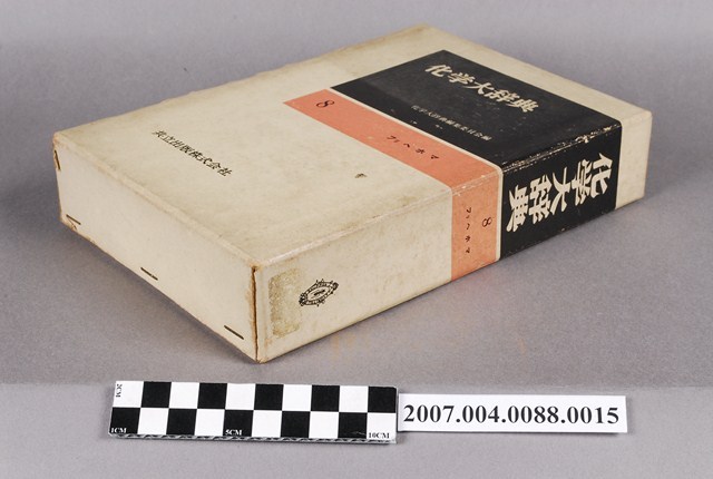 本物件為化學大辭典編輯委員會編《化學大辭典》第8卷書殼,為共立出版社株式會社於昭和46年2月5日發行,發行者為南條正男,此辭典書殼以米白色為主,定價為2500日幣。