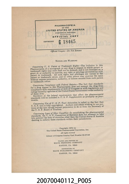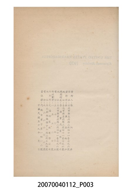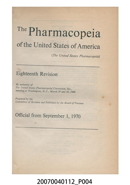 2007.004.0112 美國藥典公約出版《美利堅合眾國藥典》1970年第18次修訂版