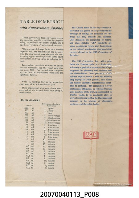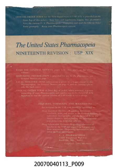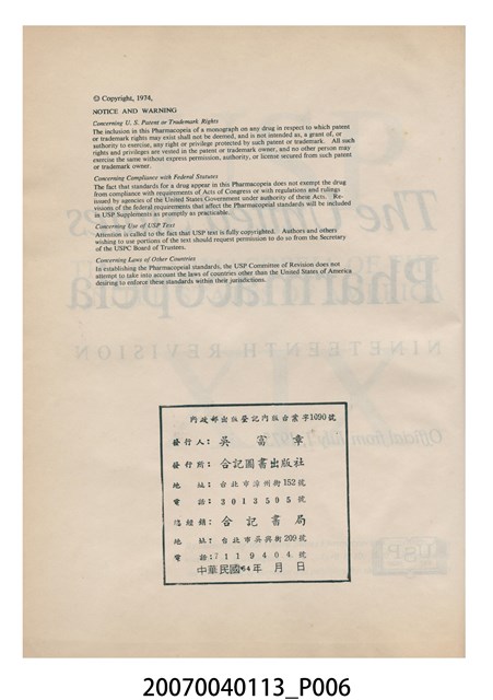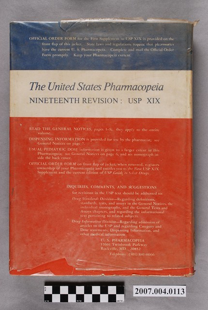 2007.004.0113 美國藥典公約出版《美國藥典》1975年第19次修訂版