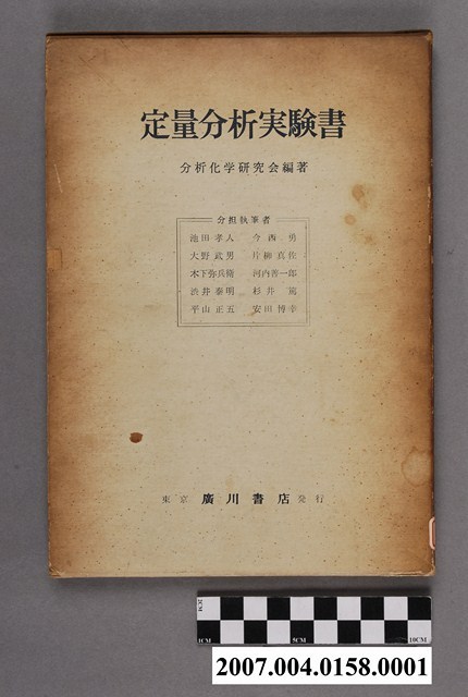 2007.004.0158 分析化學研究會編著《定量分析實驗書》