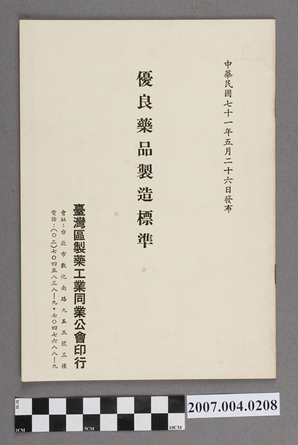 2007.004.0208 臺灣區製藥工業同業公會印行《優良藥品製造標準》
