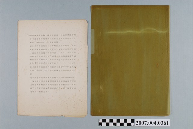 本物件為陳玉盤著〈中藥鑑定新儀器之介紹〉。內容包含「液滴向流層析法」、「雙波長薄層掃描儀」、「高速液相層析法」的介紹與使用方法、優缺點。
