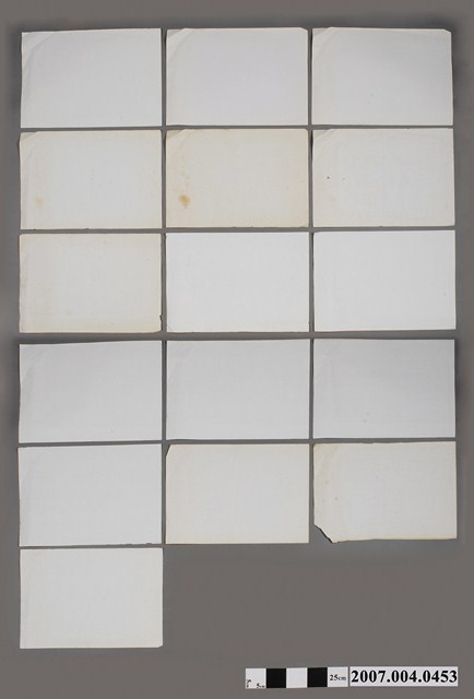 本物件為藥品製造許可證製造管制標準書清冊表單。共有16張表單,可以分成兩種表單類型,簡易小格表單有6張,複雜大格表單則有10張,分別表示藥品製造許可證和製造管制標準類別。各表單背面無字。