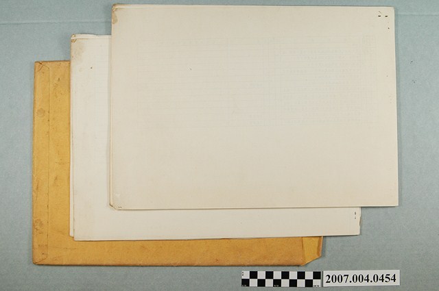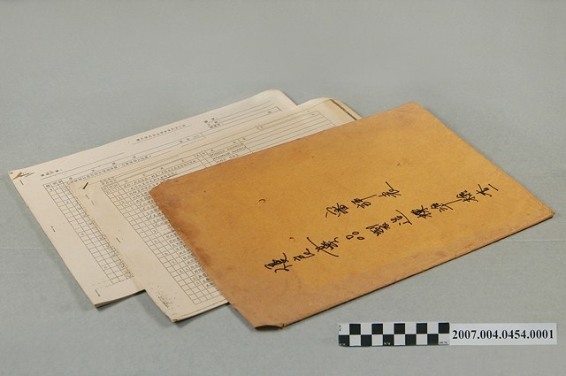 本物件為優良藥品製造標準檢查審評表。共有2項文件和一寫有優良藥品製造標準檢查審評表之牛皮紙袋。