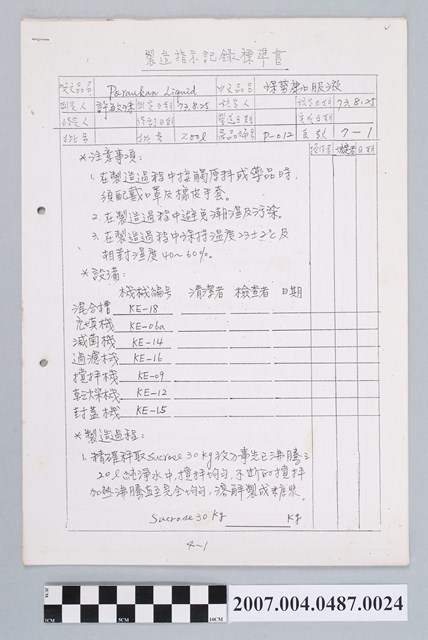 2007.004.0487.0024 保勞康口服液製造指示記錄標準書