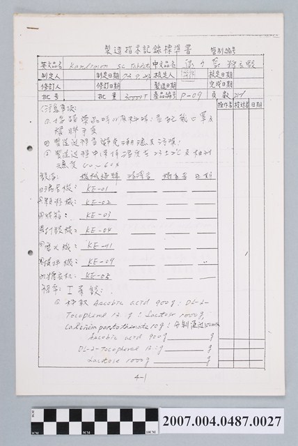 2007.004.0487.0027 康力蒙糖衣錠製造指示記錄標準書