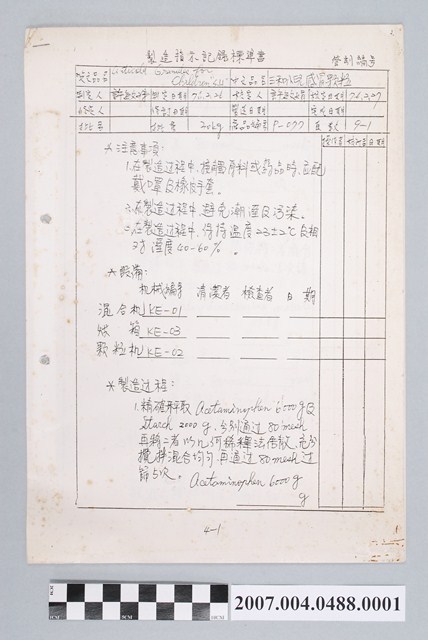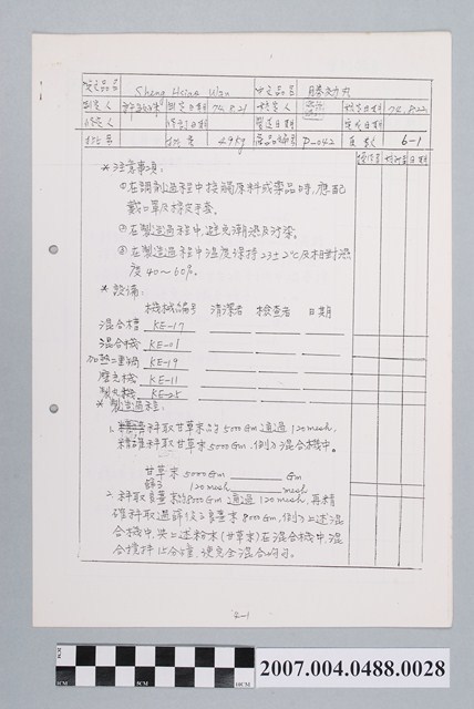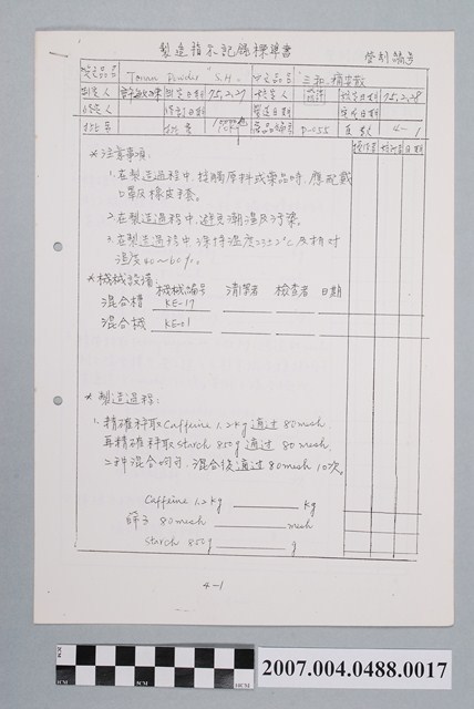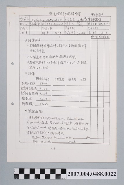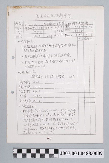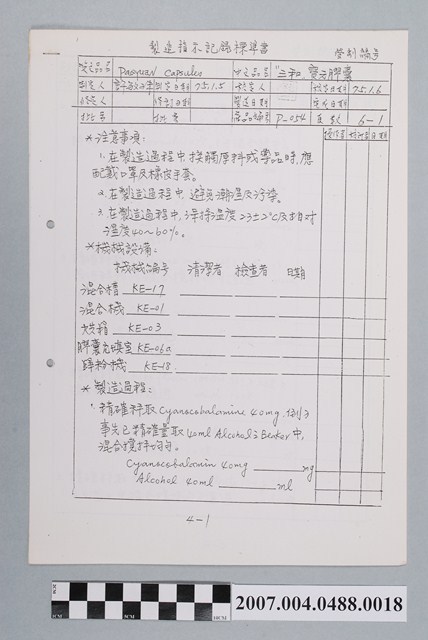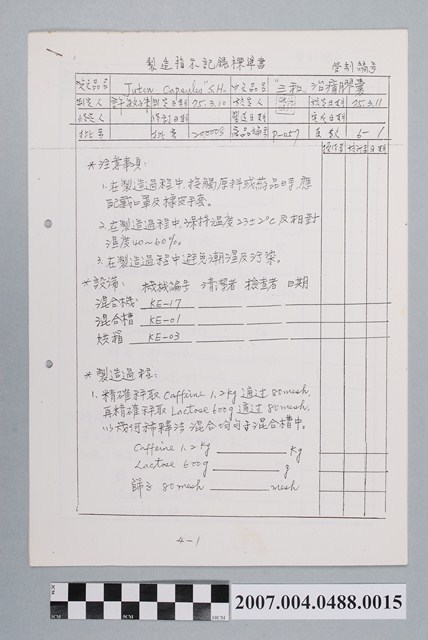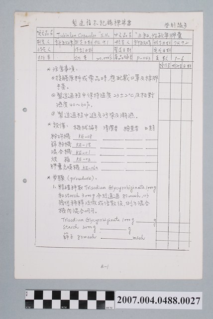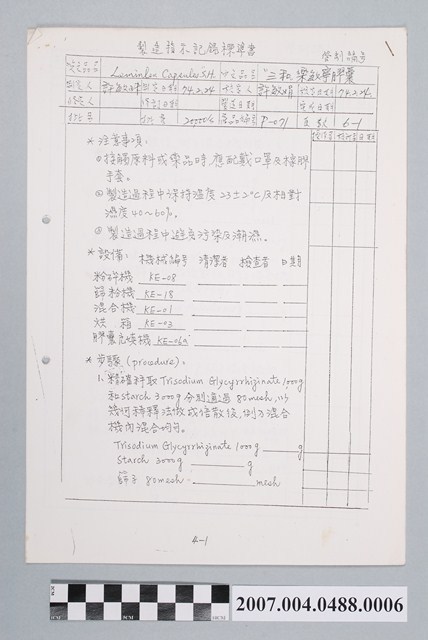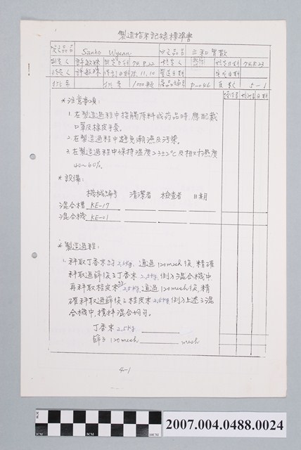 2007.004.0488 三和藥廠製造指示記錄標準書文檔2