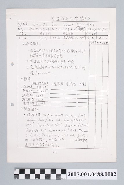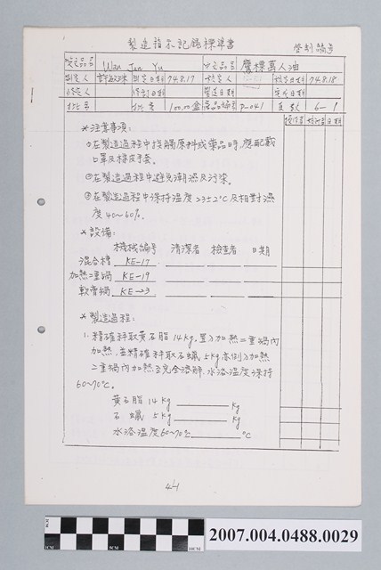 2007.004.0488.0029 鷹標萬人油製造指示記錄標準書