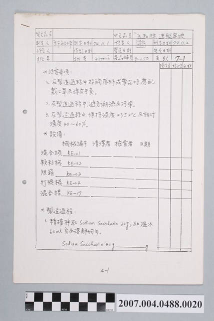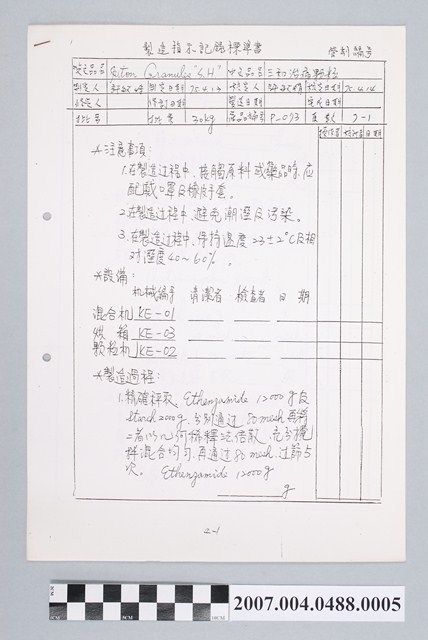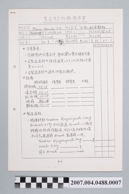 2007.004.0488.0007 三和敏安顆粒製造指示記錄標準書