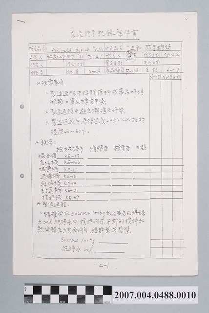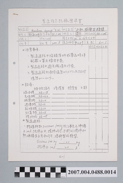2007.004.0488.0014 三和感樂安糖漿製造指示記錄標準書