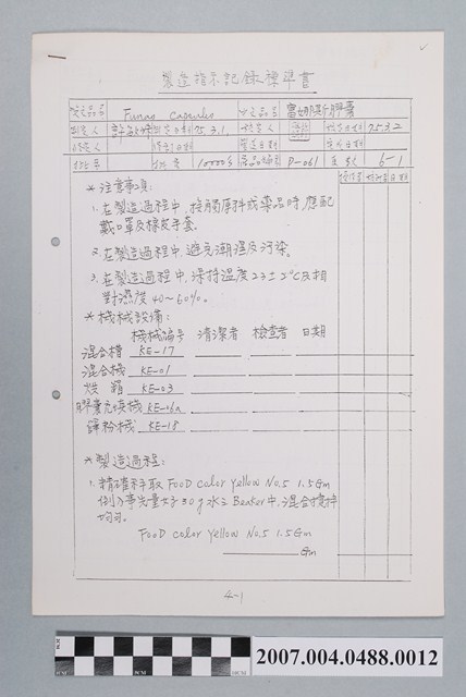 2007.004.0488.0012 富娜斯膠囊製造指示記錄標準書