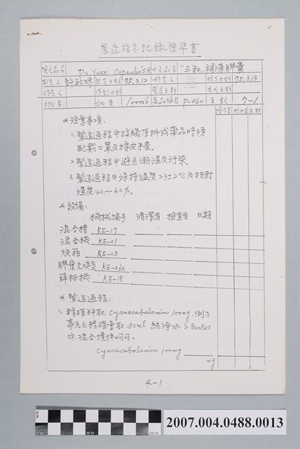 2007.004.0488.0013 三和補源膠囊製造指示記錄標準書