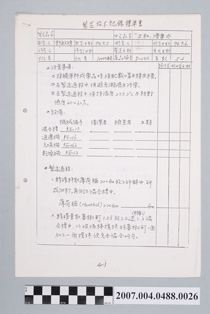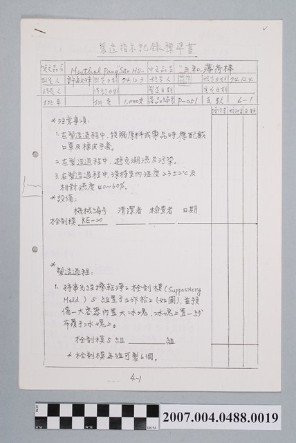 2007.004.0488.0019 三和薄荷棒製造指示記錄標準書
