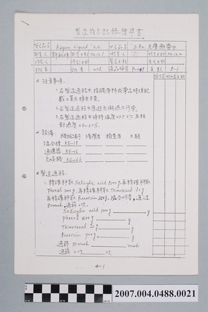 2007.004.0488.0021 三和克癢癬藥水製造指示記錄標準書