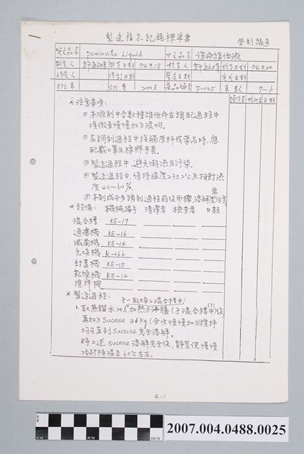2007.004.0488.0025 保命維他液製造指示記錄標準書