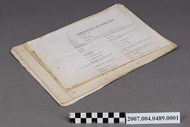 1. 本物件為檢驗報告。有英文與日文文件,有Certificate of Analysis、Analysis Report、Orotic Acid、Test Method、規格および試驗方法等。 2. 有一文件押有日期May 20 1983,故本物件應為西元1965之後出現。