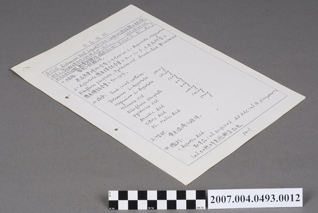 本物件為三和利達賜康口服液成品規格。表格上有英文品名、中文品名、制定人、制定日期、核定人、核定日期、制定依據、產品編號和頁數欄位。制定人欄位為許敏珠,核定人無法辨識,制定日期和核定日期欄位分別為75.2.15、75.2.16,此應是民國紀年。制定依據為新藥試驗法、混合製劑之試驗法等。表格下方分為規格、成分、性狀、鑑別項目書寫。此藥性狀為黃色混濁液體。
