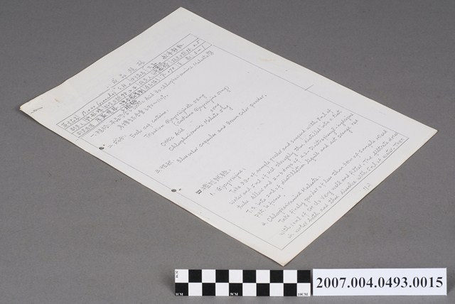 本物件為三和敏安顆粒成品規格。表格上有英文品名、中文品名、制定人、制定日期、核定人、核定日期、制定依據、產品編號和頁數欄位。制定人欄位為許敏珠,核定人欄位為許敏娟,制定日期和核定日期欄位分別為75.2.4、75.2.5,此應是民國紀年。制定依據為原廠規格、綜合感冒劑之檢驗。表格下方分為規格、成分、性狀、鑑別試驗項目書寫。