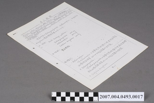 本物件為三和治痛顆粒成品規格。表格上有英文品名、中文品名、制定人、制定日期、核定人、核定日期、制定依據、產品編號和頁數欄位。制定人欄位為許敏珠,核定人欄位為許敏娟,制定日期和核定日期欄位分別為75.3.13、75.3.14,此應是民國紀年。制定依據為綜合感冒之檢驗。表格下方分為規格、成分、性狀、鑑別試驗項目書寫。此藥性狀為黃色顆粒。