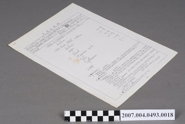 本物件為三和治蟲寧錠半成品規格。表格上有英文品名、中文品名、制定人、制定日期、核定人、核定日期、制定依據、產品編號和頁數欄位。制定人欄位為許敏珠,核定人欄位為許敏娟,制定日期和核定日期欄位分別為75.1.7、75.1.8,此應是民國紀年。制定依據欄位為空白。表格下方分為規格、成分、性狀、鑑別試驗等6個項目書寫。