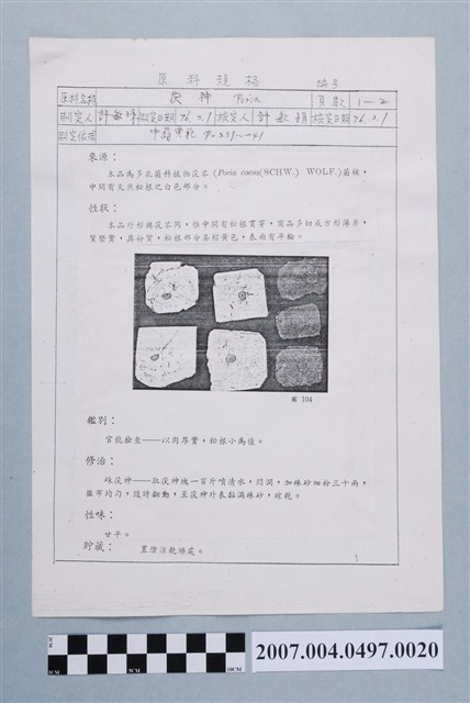 2007.004.0497.0003 乳香中藥材檢驗記錄表
