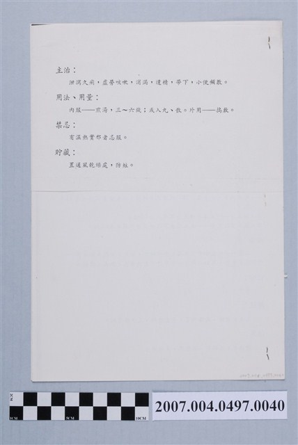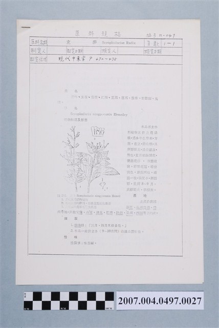 2007.004.0497.0002 中藥材檢驗記錄表空白頁