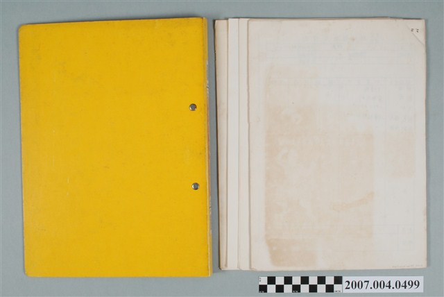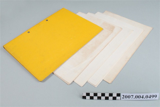 本物件為三和藥廠中藥包裝規格文檔。共有4項文件,夾在黃色資料夾中,資料夾封面有手寫之中藥包裝規格字樣。