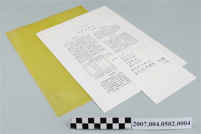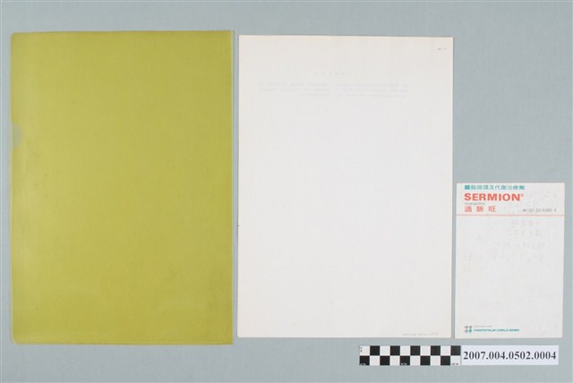 本物件為中華藥典附錄生藥檢驗法。首頁印有中華藥典附錄、生藥檢驗法字樣,內容標題有樣品採集法、檢品之處理、夾雜物檢查法、灰分測定法、水位測定法、抽提物測定法、揮發油測定法等。另有一便簽紙,寫有中藥、TLC、成品Test、安定性試驗書等字樣。