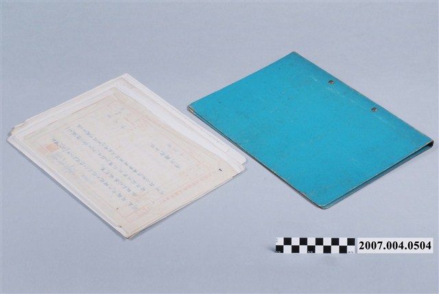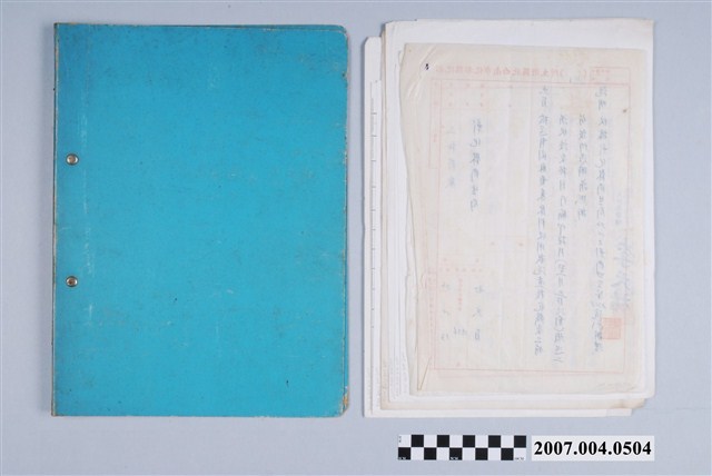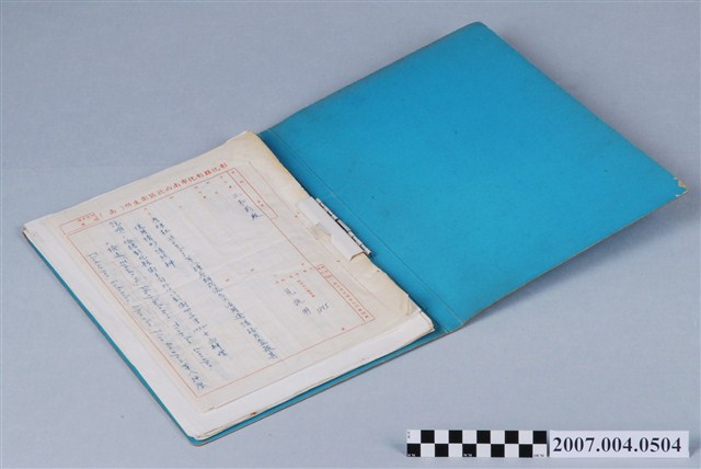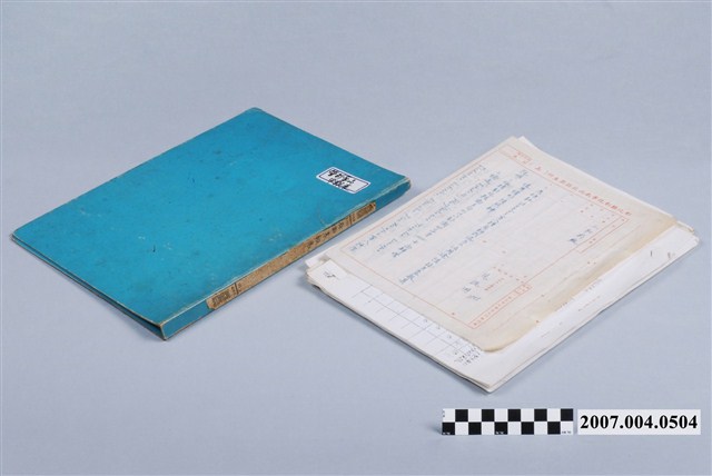 本物件無三和藥廠麻黃素使用狀況查核文檔。共有10項文件,夾在藍色資料夾中,資料夾封面貼有一標籤紙,上有手寫之管制藥品申報表字樣。