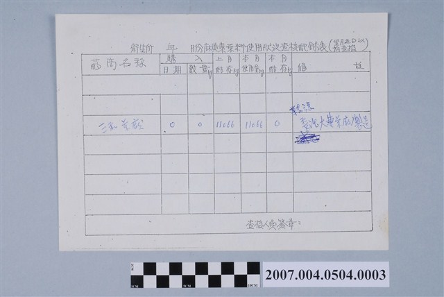 2007.004.0504.0003 衛生所麻黃素原料使用狀況查核紀錄表
