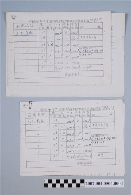 2007.004.0504.0004 衛生所75年至77年麻黃素原料使用狀況查核紀錄表
