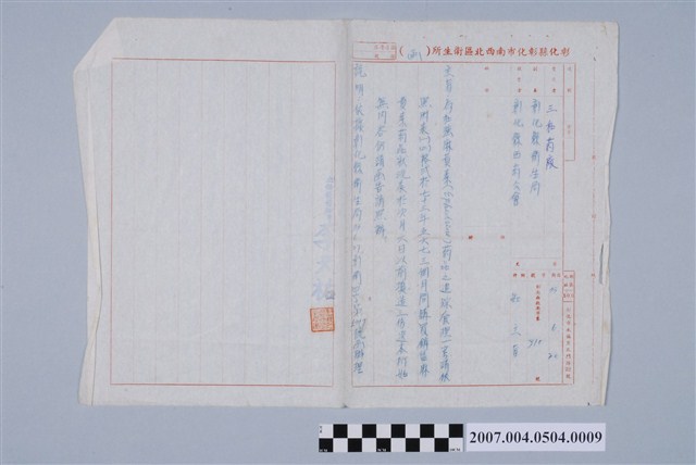 2007.004.0504.0009 彰化縣彰化市南西北區衛生所函彰南西北衛字第910號