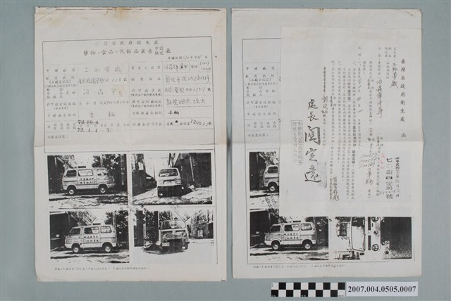 本物件為臺灣省政府衛生處致三和藥廠藥物廣告審查完竣函。受文者為三和藥廠,發文日為民國72年(1983)4月7日。函件主旨關於三和藥廠申請治蟲寧片三件藥品車輛廣告之核准。