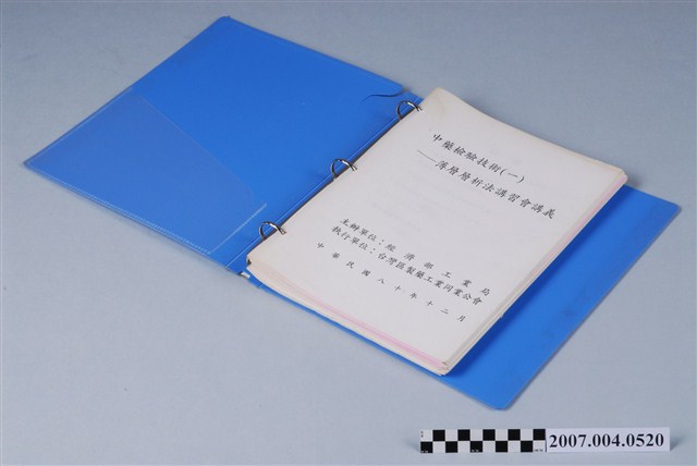 本物件為中藥檢驗技術(一)薄層層析法講習會講義。由物件封面可見主辦單位為「經濟部工業局」、執行單位為「台灣區製藥工業同業公會」。本書目錄共分7章,「從藥物檢驗觀點談中藥品質鑑定及發展趨勢」、「中藥製劑品管規格及項目及制訂」、「薄層層析片保存及照像須知」、「中藥成分分類溶媒之選擇及其原理(一)」、「中藥成分分類溶媒之選擇及其原理(二)」、「TCL原理介紹」、「顯色劑選擇及其原理」。