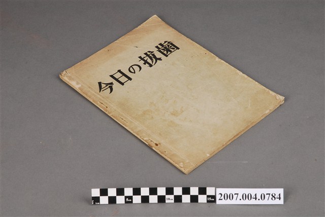 本物件為《今日の拔齒》。封面印有今日の拔齒字樣,無圖。無目錄,此為拔齒特集號,內容有13篇文章,另有日本口腔外科學會長大井清寫於西元1965年之序言。本書無詳細出版資訊,從序言可知應為醫齒藥出版株式會社於西元1965年出版。
