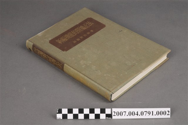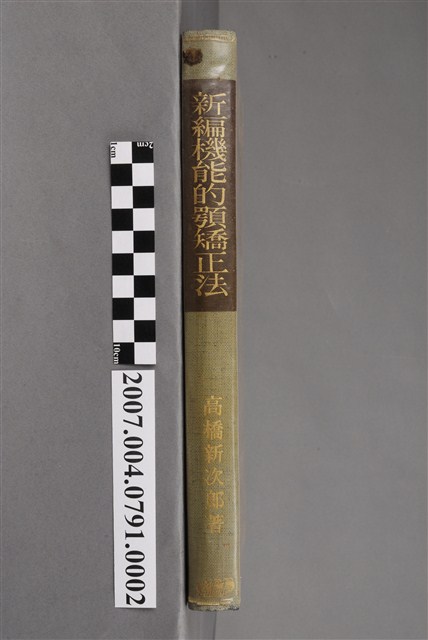 本物件為高橋新次郎著《新編機能的顎矯正法》之書冊。封面為綠底,無圖,上有文字。封面文字有新編機能的顎矯正法、高橋新次郎著、醫齒藥出版株式會社。目次分為2篇,第一篇為基礎篇,共有5個章節,第二篇為臨床篇,共有9個章節,包括引用文獻。本書由醫齒藥出版株式會社,於昭和37年(1962)3月10日發行,此書為第5版。