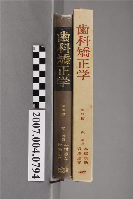 本物件為本橋康助等編《齒科矯正學》。共有2個物品,分別為書殼與書冊。