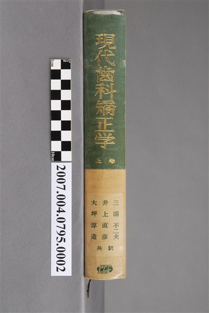 本物件為T. M. Graber編《現代齒科矯正學:概念與技術》上卷之書冊。封面為一半綠色一半米色,最外層有塑膠套。封面上無圖,有文字。封面文字有現代齒科矯正學、概念與技術、上卷、醫齒藥出版株式會社等字樣,以及原編者和翻譯者之名字與任職單位,共有4人。目次分為6章與索引。本書由醫齒藥出版株式會社,於昭和46年(1971)3月25日發行,此書為第1版第2刷。