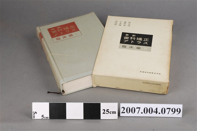 本物件為井上直彥等著《最新齒科矯正アトラス:臨床編Ⅱ》。共有2個物品,分別為書殼與書冊。