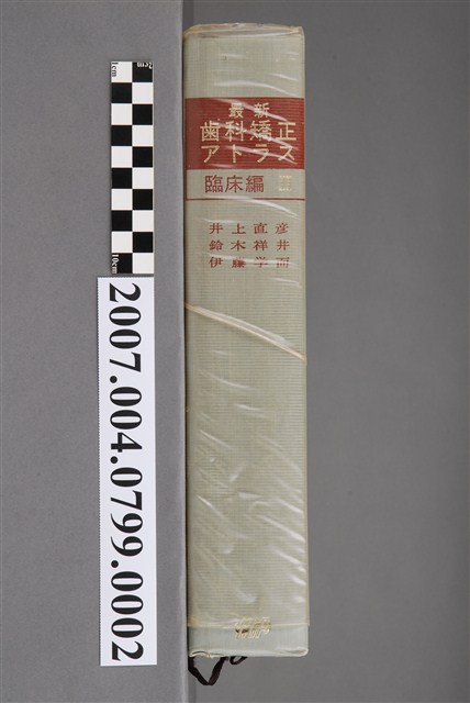 本物件為井上直彥等著《最新齒科矯正アトラス:臨床編Ⅱ》之書冊。書冊最外層有塑膠套。封面上無圖,有文字。封面文字有最新齒科矯正アトラス、臨床編Ⅱ、井上直彥、鈴木祥井、伊藤學而。本書內容與臨床牙齒矯正圖集有關,目次分為序論和治療計畫的實際,序論下有5個標題,治療計畫的實際下有7個標題。本書由醫齒藥出版株式會社,於昭和51年(1976)1月1日發行,此書為第1版第1刷。