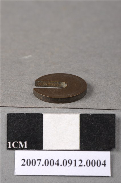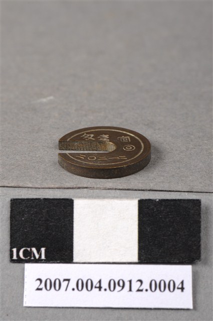本物件為壹匁砝碼,外型呈現不完整的圓型,上刻著「壹匁」,下方刻著「二一二○二」,背面並無刻字。「匁」為日本度量衡的重量單位,約等於3.75公克,相當於中國的「錢」,約等於十分之一「兩」。